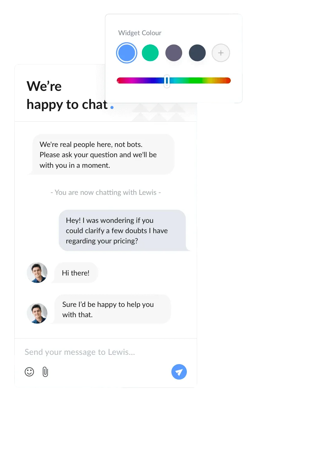 Let visitors know who they'll be chatting with. Add names, photos, or even a pic of your business